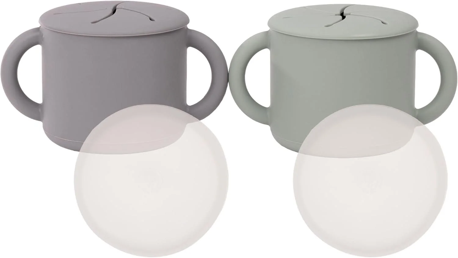 These snack cups are spill-proof and soft for tiny hands. Hello, double win!